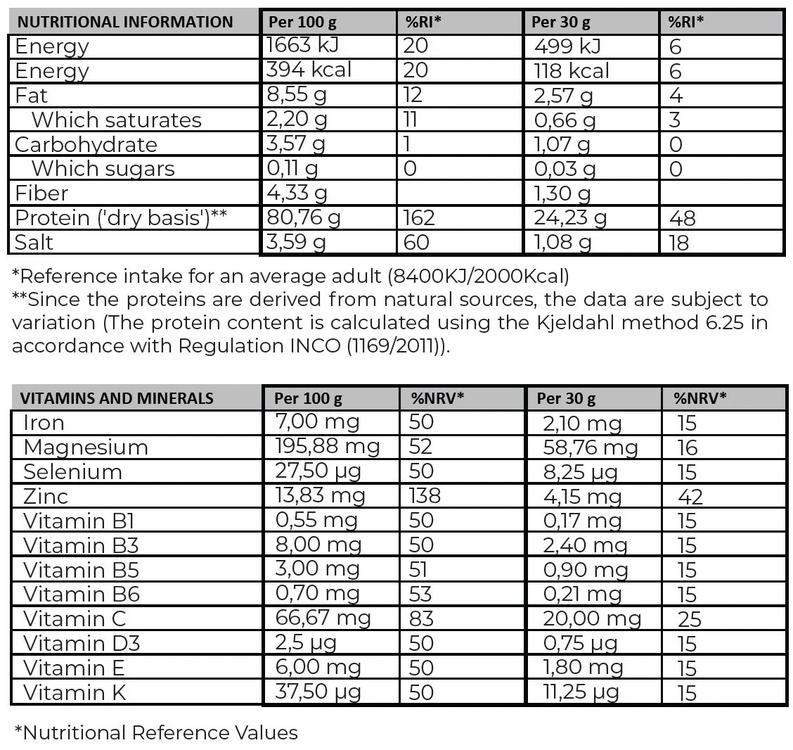 It can be easily mixed with various beverages, allowing for a customized consumption experience based on personal preferences. The recommend dosage is 30gr mixed in 250ml water or plant-based milk. A measuring scoop is included in the bag.